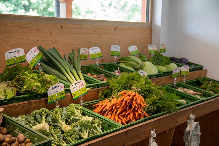 Birkahoflädile (Mauren): Self-service farm shop selling seasonal produce and crafts made in HPZ’s vocational workshops for people with disabilities.