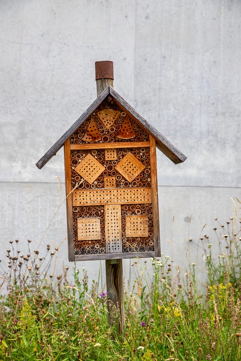 Insect “hotels” built into wooden frames