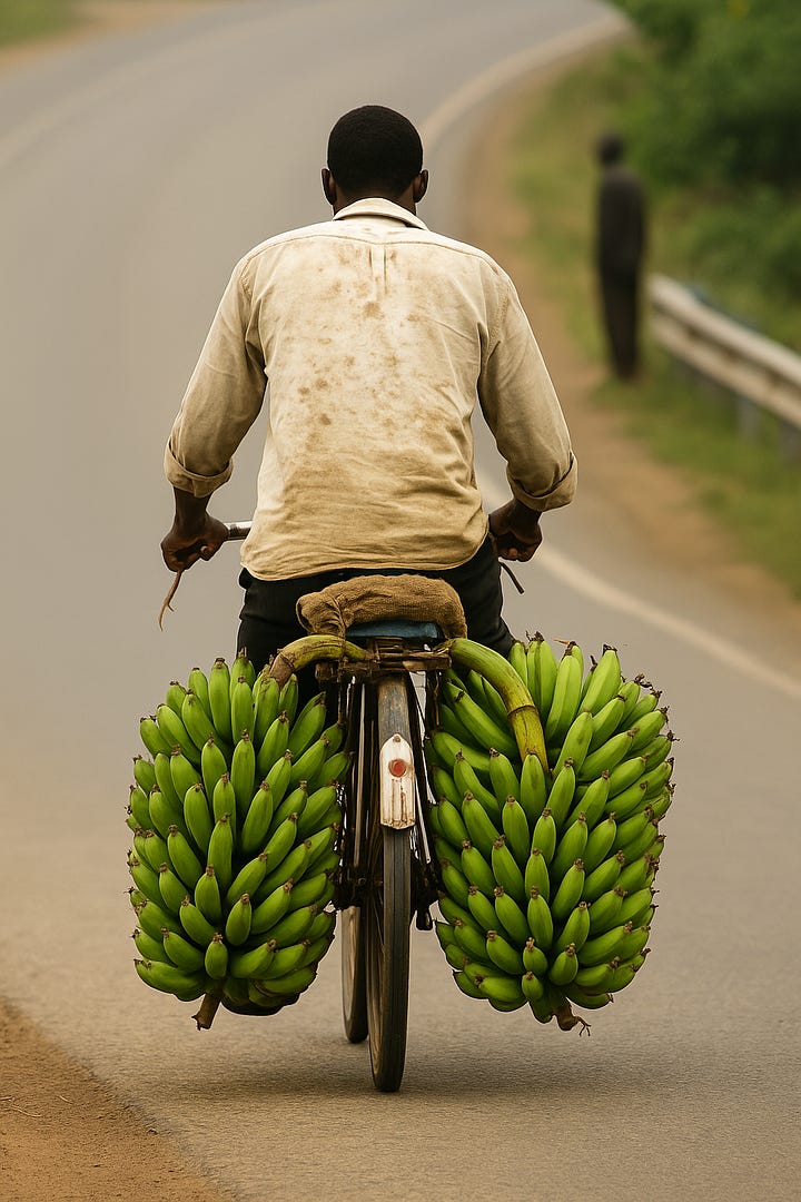 ‘Banana boys’ flying on single-speed bicycles overloaded with bunches