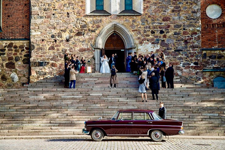 That same quiet surfaced again in small moments. In Turku, just as a bride and groom stepped out of a church. They blinked into the crisp light, friends and family spilling behind them in quiet celebration. There was laughter, but it didn’t erupt. It floated as though even joy here had been tuned to the softer register of the season.