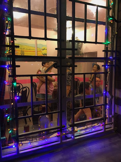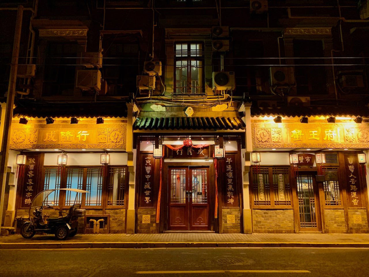 My bicycle was my passport. In the mornings, I’d ride it along Suzhou Creek to work, where vendors steamed dumplings beside shops bending metal into anything you needed. After work, I’d swerve through alleyways, mentally noting which local restaurants were full. In the evenings, I’d walk through my neighborhood, composing photos in my mind of moments others didn’t seem to notice: a man asleep on a cot in a closed grocery store, a family sharing a meal behind a window glowing with Christmas lights.