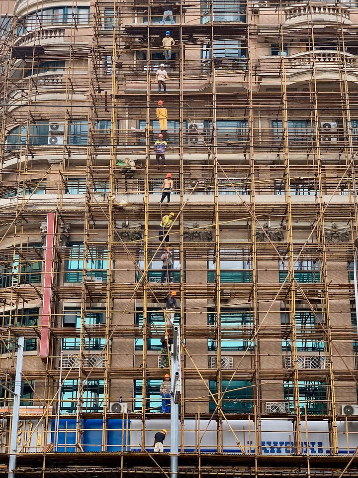 The city was never still. Not in its streets, not in its people, and certainly not in its skyline. Skyscrapers rose like time-lapse footage, and entire blocks disappeared overnight beneath bamboo scaffolding. In some ways, it felt like the city and I were on parallel tracks: constantly being built, knocked down, and reshaped again.